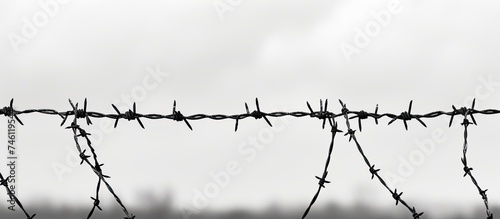 barbed wire, silhouette, monochrome, security, confinement, boundary, restriction, fence, protection, vertical, grey, safety, barrier, deterrent, enclosure, sharp, metal, fenced, contrast, perimeter, defense, monochromatic, photo, no entry, isolated, trespassing, private property, bleak, foreboding, separation, border, control, trespass, prevent, access, private, no trespassing