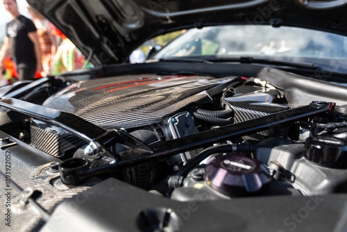 The vehicle open engine a car hood for safety test