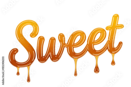 The word "Sweet" rendered in a realistic, dripping honey or caramel-like substance, showcasing a delicious and gooey texture. background removed