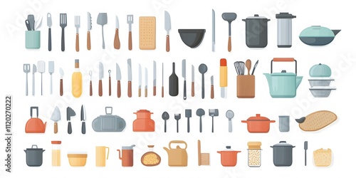 Theme: Food, Cooking, Kitchen Utensils, Icon Set, Shapes, Objects, Colorful, on White Background, Abstract Image, Texture, Pattern Background, Wallpaper, Cover and Screen of Smartphone, PC, Laptop, 9: