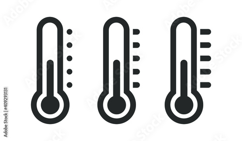 Thermometer vector set icon with temperature half scale for weather or medicine. Vector illustration.