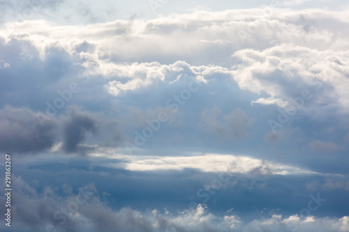 Thick beautiful clouds and clouds in the sky. Cloudy weather before the storm and rain.