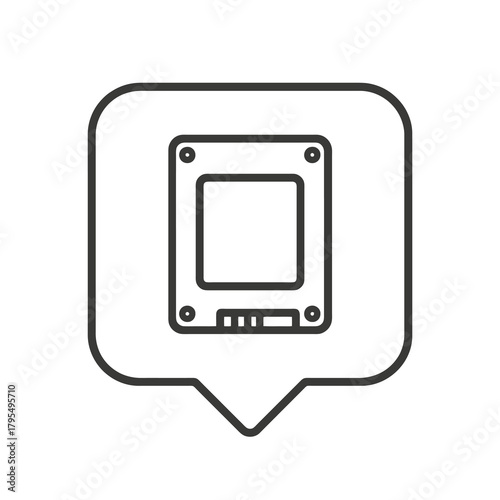 Thin line SSD drive icon inside square pin, black vector symbol representing modern storage hardware, fast data access, and PC components.