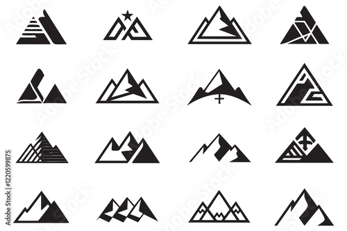 mountain, logotype, design, abstract, graphic, black-and-white, minimalist, symbol, illustration, vector, branding, icon, template, creative, nature, adventure, outdoors, travel, modern, geometric, simple, set, collection, mountain chain, peak, silhouette, graphic design, line art, tattoo, monochrome, design element, logo design, artwork, mountain peak, artistic
