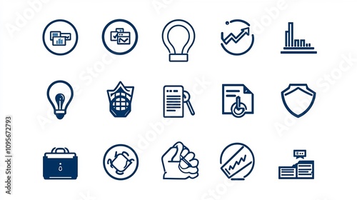 This set of sleek black outline icons highlights various business concepts such as workflow optimization productivity teamwork and growth strategies