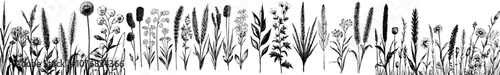abstract, background, black, botanical, tree branch, bush, decorative, design, design element, doodle, drawing, element, fern, field, flora, floral, flower, garden, grass, growth, herb, herbal, organic, illustration, leaf, season, wild, vignetting, meadow, silhouette, romantic, landscape, plant, isolated, nature, shape, stem, medicinal herbs, spring, summer, set