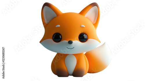 This transparent PNG image features a cute, smiling fox figurine with large eyes and a fluffy tail. Its friendly, playful design makes it an adorable addition to any animal-themed collection or fun de
