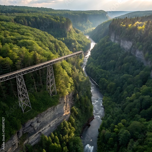 landscape, river, mountain, nature, forest, water, mountain, travel, road, view, green, tree, bridge, waterfall, sky, vale, hill, summer, rock, scenic, park, train, stone, wall, lake