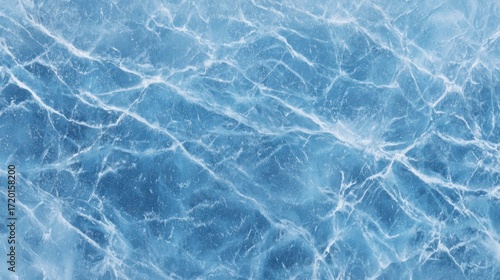 This visual showcases a smooth surface of clear blue ice featuring beautiful, delicate patterns. The natural light enhances the crystalline texture, creating a stunning effect.