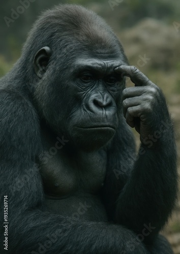 Thoughtful gorilla in deep contemplation.
