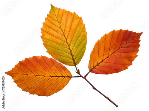 autumn, fall, leaf, tree branch, foliage, colourful, vibrant, nature, season, seasonal, yellow, orange, red, green, isolated, black background, closeup, detail, texture, vein, serrated, beauty, graphic design, web design, decoration, background, plant