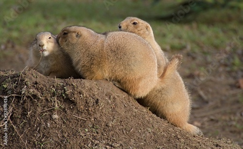 three black-tailed prairie dog at the burrow