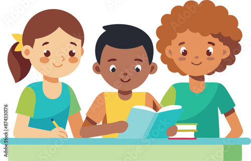 education, childhood, school, boy, person, studying, girl, children, sitting, desk, elementary, table, book, learn, lesson, student, young, classroom, cognition, class, little, children, computer, pupil, lifestyle, caucasian, group, indoor, cute, illustration, classmate, preschool, together, schoolboy, room, laptop, technology, african, black, vector, notebook, activity, communication, cartoon, reading, homework, character