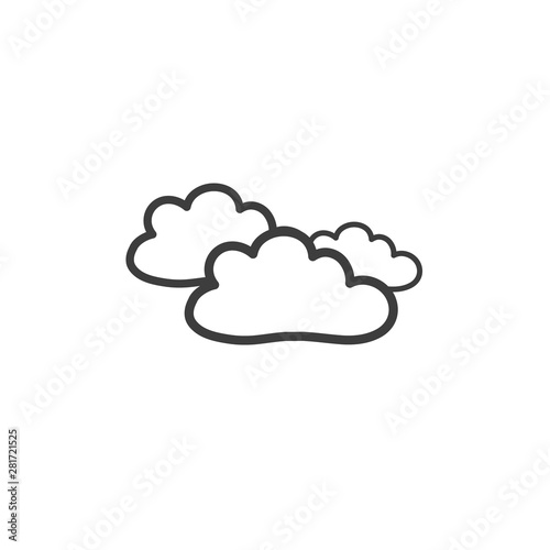 Three clouds in the style of a doodle. A symbol of cloudy weather. Vector drawing by hand.