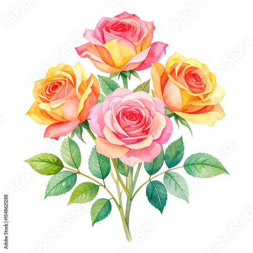rose, bouquet, flower, nature, flower petals, botanical, floral, vibrant, colours, beauty, garden, romantic, love, decoration, spring, blooming, freshness, leaf, elegance, art, design, illustration, organic, arrangement, soft, pink, yellow, green, classic, charme