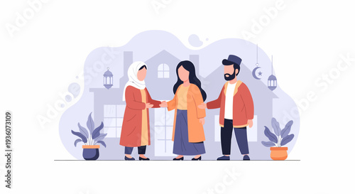 people, greeting, handshake, diverse, man, woman, friends, oneness, connection, meeting, social, communication, interaction, friendship, agreements, partnership, cooperation, collaboration, welcome, respect, culture, community, together, group, adult, illustration, vector, cartoon, flat, character, friendly, happy, smile, ethnic, religious, muslim, islam, eid, celebration, gathering, event, harmony, hugs, support, team, business, deal, introduction, acquaintance