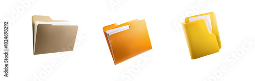 Three folders with papers in them, the left folder is tan and the right two folders are various shades of yellow.