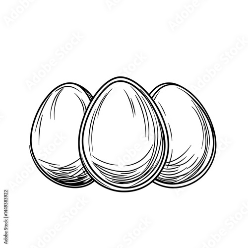 Three Hand-Drawn Chicken Eggs in Black and White