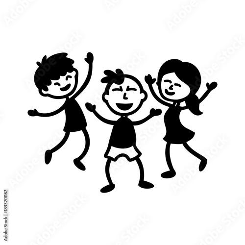 children, children, stick, figure, drawing, happy, joy, celebration, jump, raise, arm, friends, group, fun, play, activity, movement, dance, boy, girl, person, human, simple, outline, silhouette, black, graphic, design, art, cartoon, character, emotion, excitement, freedom, youth, childhood, together, team, success, victory, active, energetic, positive, symbol