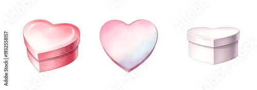 Three heart-shaped boxes in pink and white on transparent background