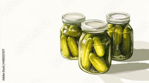 Three jars of pickles are on a white background