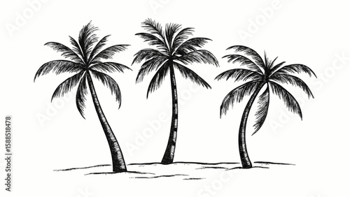 Three Palm Trees Drawing Vector Black and White Tropical Art