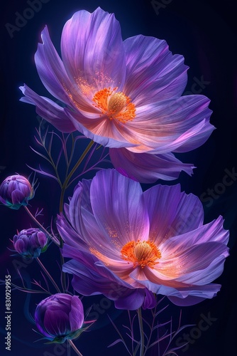 three, purple, flower, black background, bloom, flower petals, elegant, design, floral, ado, dark, beautiful, contrast, colourful, bright, botany, nature, garden, plant, flora, decorative, ornamental, exquisite, striking, bold, stunning, attractive, artistic, creative