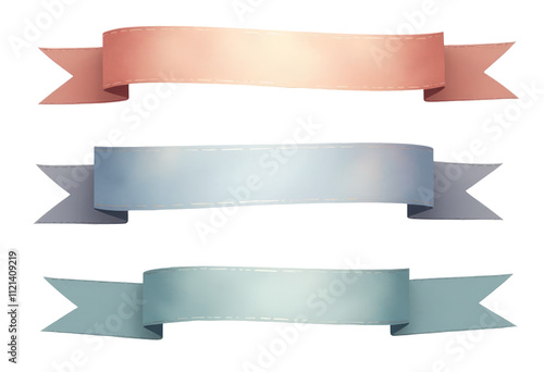 Three ribbons in peach, light blue, and teal arranged horizontally, transparent isolated png