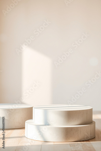 platform, round, display, minimal, aesthetic, wooden, floor, beige, wall, sunlight, shadow, light, background, product, clean, simple, modern, neutral, tone, texture, smooth, cylinder, stage, layer, elevation, design, composition, arrangement, setting, scene, visual, graphic, decor, style, interior, home, showroom, studio, presentation, marketing, advertising, template, branding