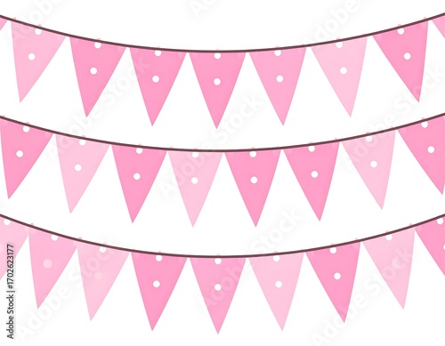 bunting, triangle, pink, polka, dot, party, celebration, decoration, string, hanging, festive, decor, cute, simple, design, pattern, girlie, baby, background, graphic, sweet