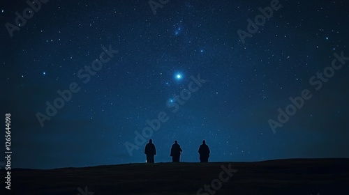 silhouette, night sky, star, astronomy, calmness, figure, horizon, darkness, peaceful, celestial, universe, night, cosmic, observation, outdoors, sky, quiet, serene, immensity, galaxy, exploration, wonder, awe, mystery, landscape, evening, celestial bodies, space, solitude