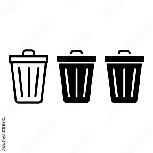 Three simple black trash cans with lids a minimalist graphic for recycling concepts