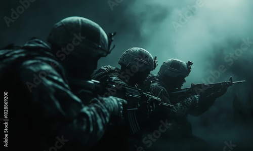 soldier, army, military, combat, warfare, team, operation, tactical, mission, gun, assault, weapon, firearm, camouflage, warrior, battlefield, night, fog, smoke, silhouette, action, strategy, danger, defense, protection, force, preparedness, training, security, prepared