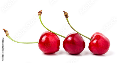 Three sweet cherry closeup isolated on white background