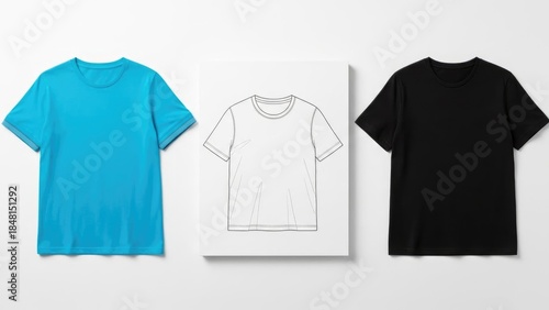 blue, t-shirt, black, clothing, fashion, shirt, apparel, design, line, drawing, white, simple, plain, casual attire, wear, garment, fabric, style, layout, arrangement, display, colours