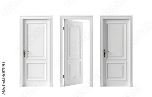 door, white, wooden, open, closed, ajar, panel, classic, frame, hardware, interior, home, architecture, design, entrance, passage, way, access, transition, possibility, opportunity, future, empty, room, perspective, entry, exit, style, vintage, elegant, simple, modern, minimalist, detail, handle, metal, solid, light, bright, isolated, digital, rendering, illustration, three-dimensional, realistic