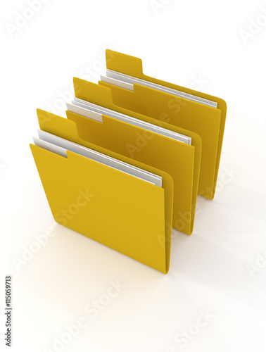 Three yellow folder on white