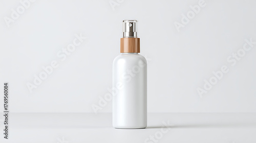 Throat spray 3d bottle with pump and nozzle, nasal container mockup, blank packaging template for cosmetic, medical dispenser, or cleaning solution on white background. 47128086 1