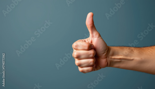 thumb, hand, gesture, approval, positive, encouragement, success, motivation, isolated, blue, background, close, cheerful, human, skin, arm, finger, signs, symbol, agreements, support, optimism, happiness, communication, body, language, male, adult, expression, confidence