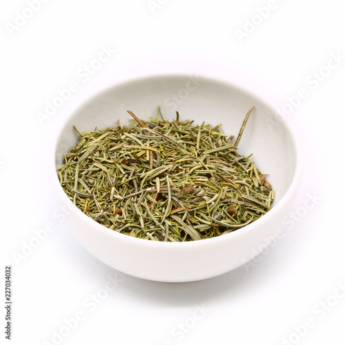 thyme in a ceramic white cup, isolated