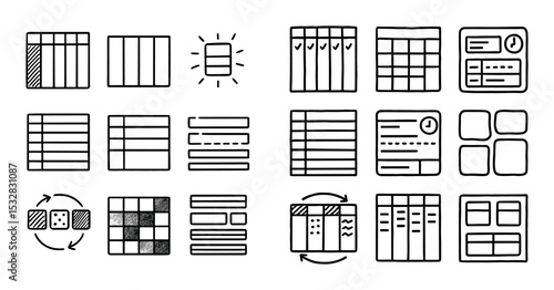 time, blocking, icon, variant, day, weekly, block, daily, sharpened, slot, hourly, buffer, flexible, rotating, theme, colours, coded, batch, session, set, pure, black, hand, drawn, line, art, white, background, minimal, design