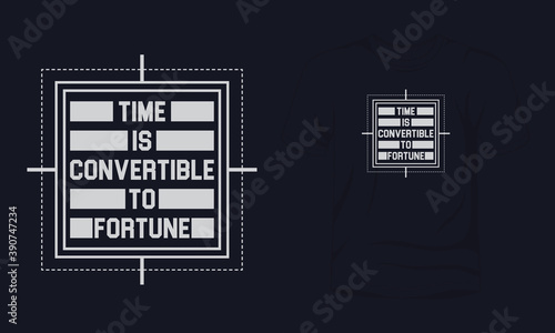 "Time is convertible to fortune" typography lettering t-shirt design.