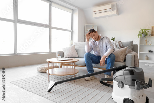 bearded, cleaning, home, man, sitting, sofa, sleepy, young, adult, apartment, background, care, caucasian, chore, clean, cleaner, cleanup, detergent, dirt, disinfect, domestic, dust, flat, floor, guy, photogenic, house, housecleaning, household, housekeeping, housework, hygiene, indoor, concierge, male, people, person, portrait, purity, routine, sanitary, supply, tidiness, tidy, vacuum, laundered, washing, wipe