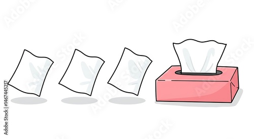 tissue, box, paper, remove, extract, white, pink, cartoon, flat, clean, simple, isolated, hygienic, day, medicals, health, personal, care, bathroom, table, drawing, illustration, indoor, light, single, delicate, thin, shadow, square, soft, supply, wipe, cleaning, household