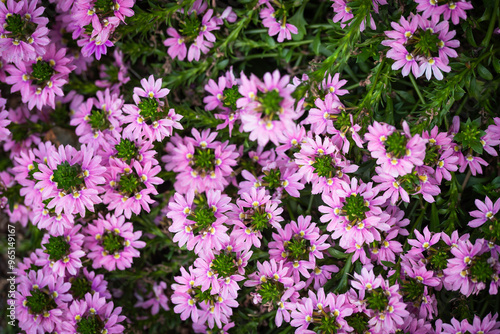 Tło kwiatowe, różowe kwiaty scewoli w ogrodzie.