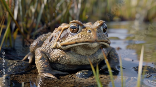Toad closeup with natural landscape generative ai