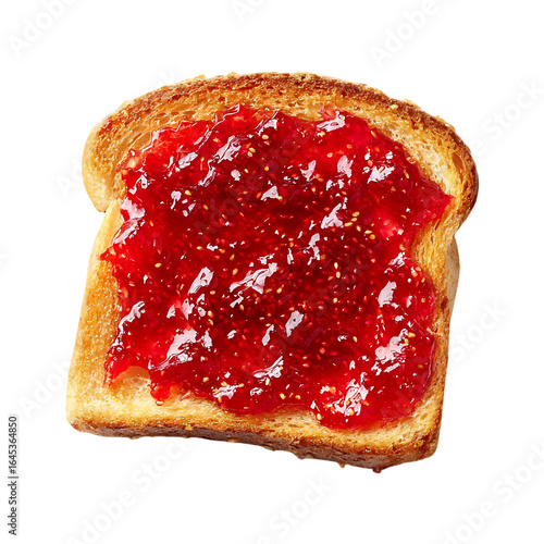 toast, bread, red, fruit, jam, preserving, jelly, sweet, dessert, breakfast, food, cookery, pastry, bakery, tasty, delicious, appetising, confectionery, culinary, epicure, homemade, snack, eating, meal, orange, gold, brown, seed, texture, close, up, top, view, overhead, isolated, background, simple, single, slice, deliciously