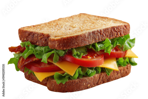 Toasted whole wheat bread sandwich with lettuce tomato and cheese food, Png, Isolated on Transparent Background, Cut Out