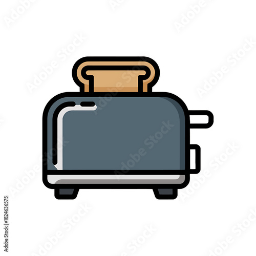 toaster, icon, white, background, vector, art, illustration, kitchen, appliance, breakfast, bread, electric, modern, simple, minimal, flat, design, technology, home, food, tool, cutlery, cooking, device, equipment, isolated, clean, style, object, graphic, convenience, outline, household, metal, silver, retro, compact, appliance, bright, slice, warm, utensil, electricity, handle, slot, toast, snack, pan, classic