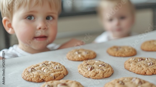 Toddlers watching freshly baked cookies